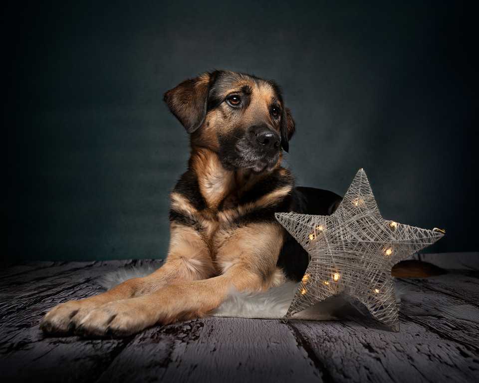 Perfekt kontrolliertes Licht, klare Linien und stilvolle Portraits. Ideal für ruhige Hunde oder Kunstportraits.